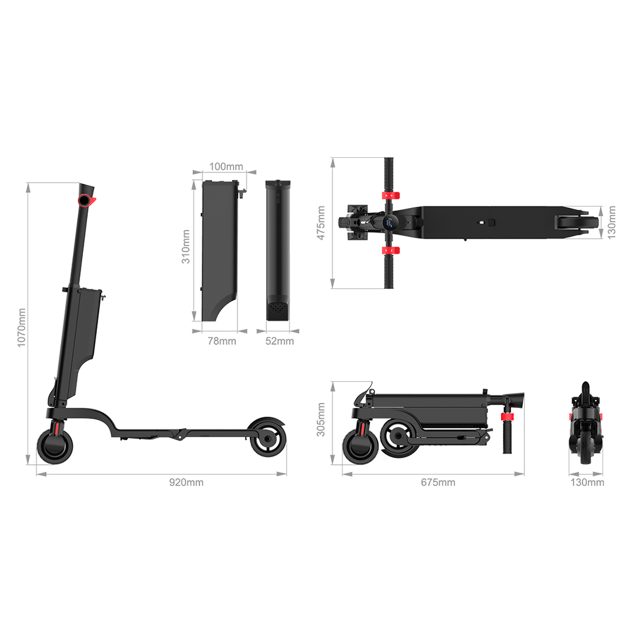 (2) Quadruple folding E-scooter ,Smallest Size in the market , easy for carrying, Save shipping freight.