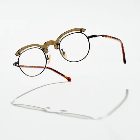 The existing style is restructured using linear layers, and the basic line elements are flattened, chamfered, bent, and arranged in a combination of two different materials to present a sense of contrast, giving new creative possibilities. On the base, titanium metal wires and acetate create a three-dimensional stack, intersecting to create another irregular aesthetic vision, subverting the formal logic of traditional frame making.