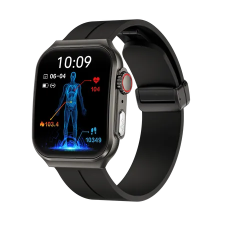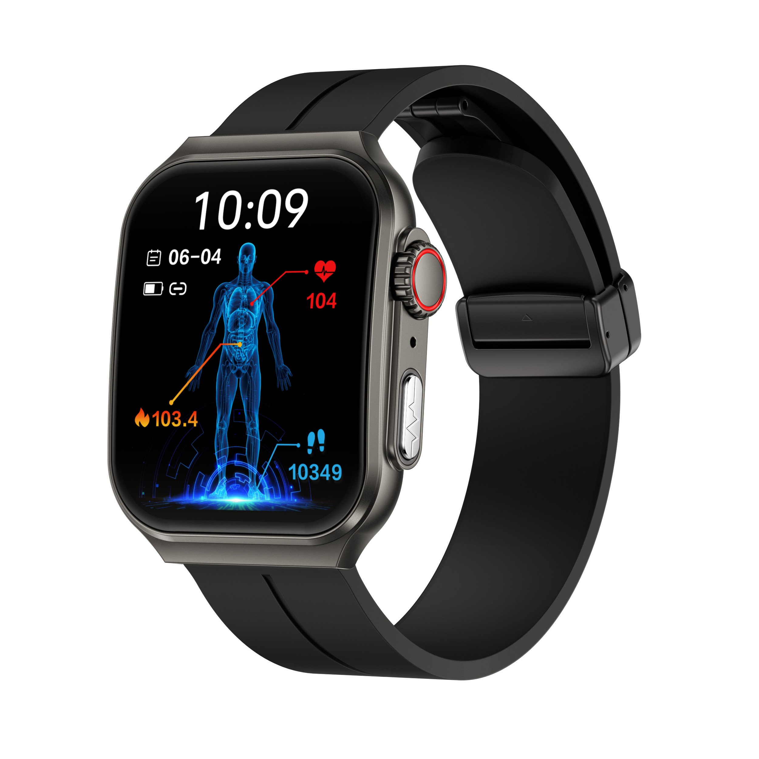 IP67 waterproof 1.96 inch HD screen with ECG function, can change multi-languages, health monitor blood glucose, and Multiple sports modes