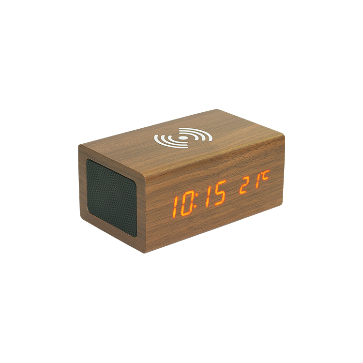 Product Name 2019 hot built in speaker wireless charger wood clock for phone