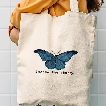 Popular Cotton shopper bag sized 38 x 42 cms with handle length of 70 cms having width of 2.5 cms. Dyed also an option along with customised prints.