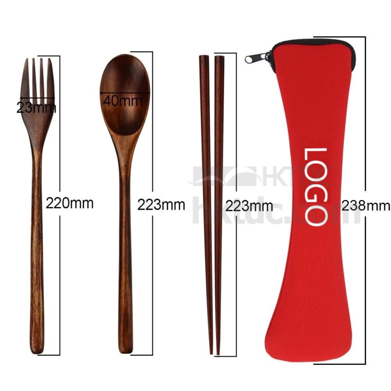 • Fork, Chopsticks, Spoon 3 pcs cutlery set in a neoprene pouch can have laser pouch on the fork, chopsticks and spoon