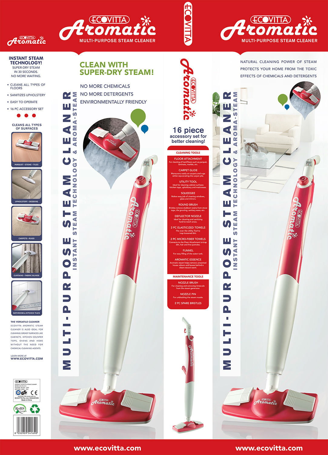 ECOVITTA Pte Ltd (Singapore) is the Original Design Manufacturer of the most advanced, all-in-one Instant-Steam Cleaning System in the world. With 30 years of experience in the steam appliances industry, Nasser Jafarzadeh, the founder of the Company, firmly believes that he has accomplished his life long goal of developing the best all-round Steam Cleaning System in the world with unmatched quality, reliability and performance. In recent years this fact has been recognised by a number of appliance industry leaders, and some of the world's leading brands and DRTV companies have introduced ECOVITTA's unique technology to their global customers under their own trusted marques. Brands such as VAX, ORECK, MORPHY RICHARDS, SUPERVAPOR, VAPORDRY, ARZUM, GEMINI, TIEN and AROMATIC.ECOVITTA has obtained the highest quality and safety standards from world-leading testing laboratories, including TUV and ETL, complying with the latest product safety standards in Europe, North America, Australia, Japan and Korea.