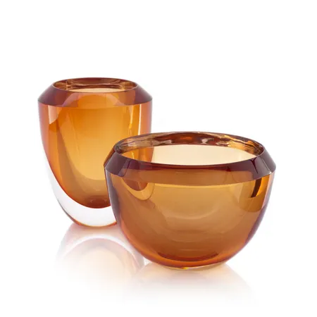 A bold, faceted edge emphasizes the weight and presence of this strikingly bold piece. The color magically shifts from amber to a fiery scarlet red, depending on the lighting conditions.