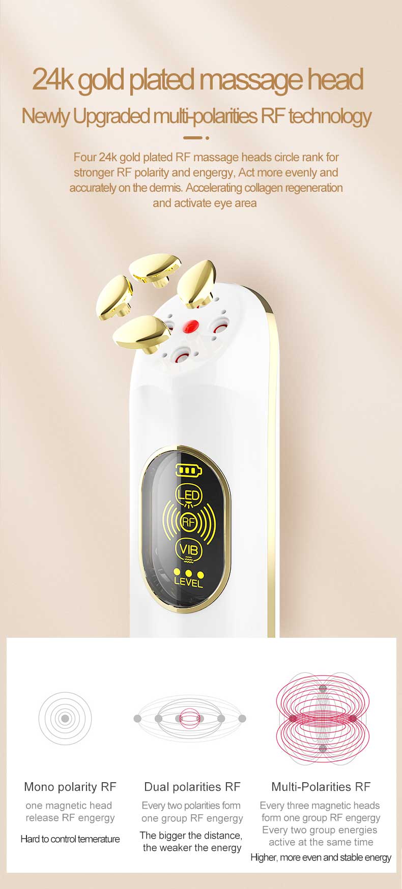 Metal massage head with 24K gold plating