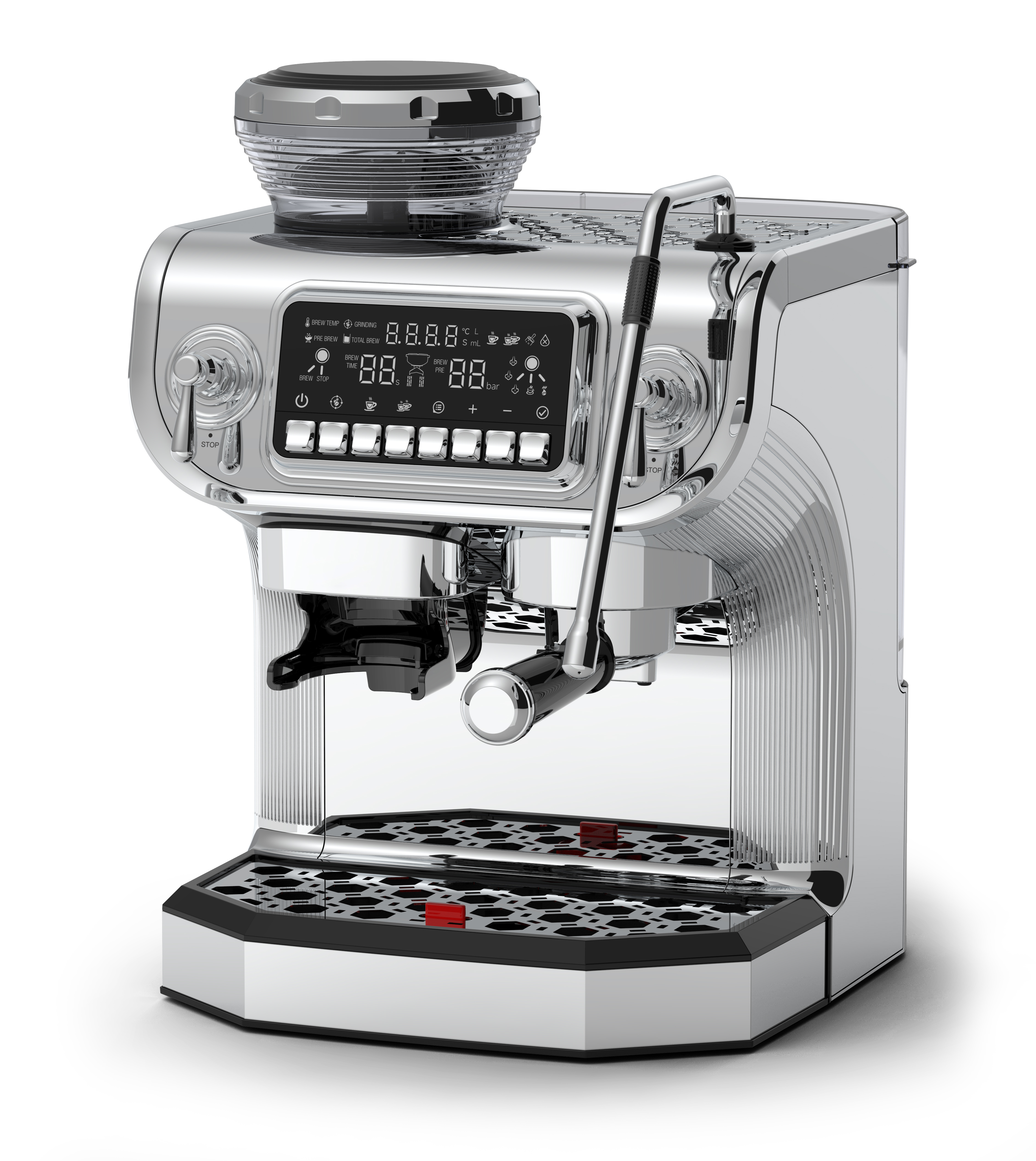 13. Removable drip tray for easy cleanup, water full buoy prompt