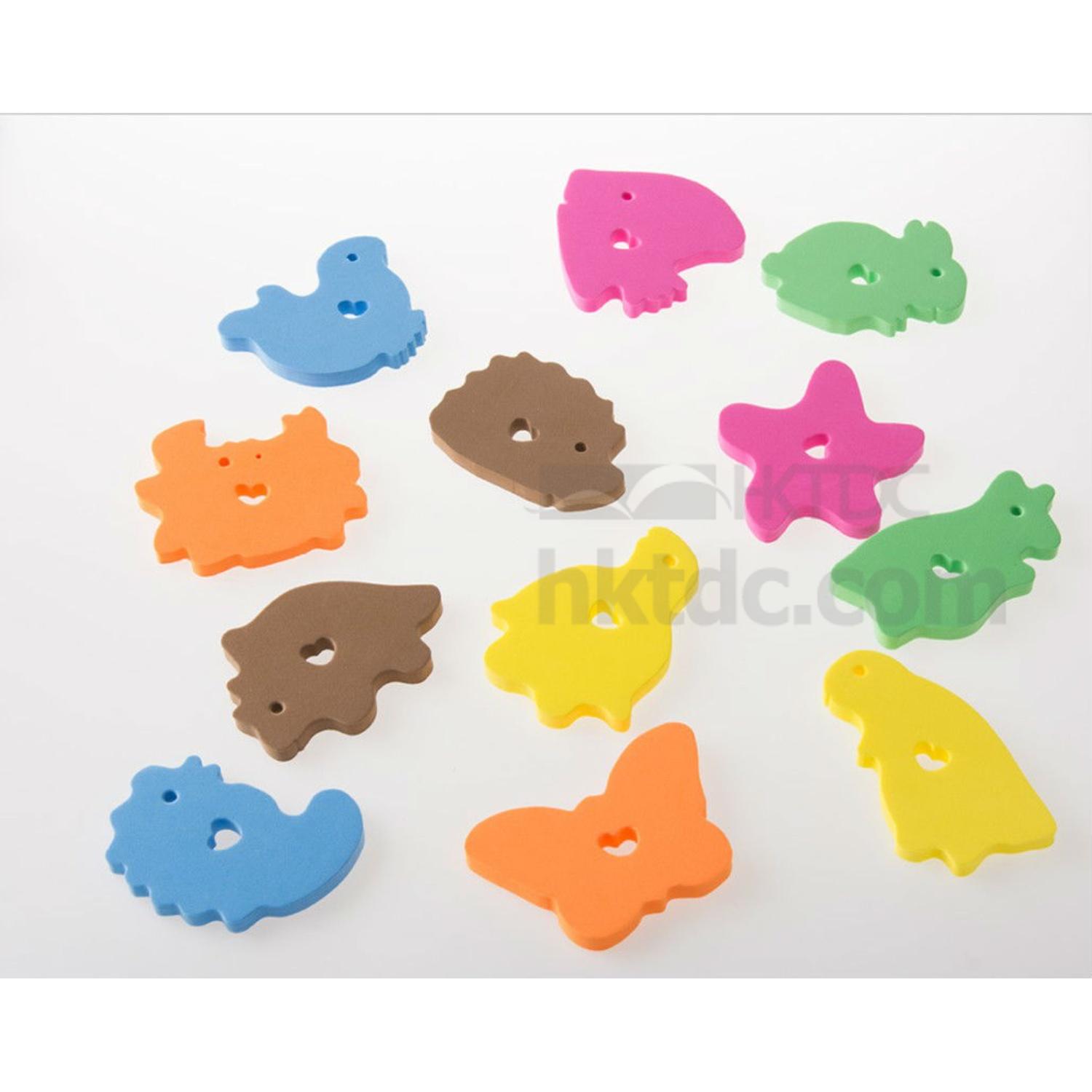 EVA bath toys is made from environmental friendly EVA, cute cartoon animal design. Baby can play them in water, training baby's visual and touch abilities, expending baby's mind. This EVA bath toys can float in the water, and can be stickered to smooth wall, side of bath when damp, making baby more interested in learning.