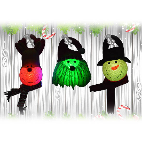 This is a series of flashing Christmas decorations that comes with a Santa Claus lantern, a snowman lantern and a deer lantern. Each piece boasts a lovely and cute design. Equipped with LEDs as the light source, these decorations have a long service life.