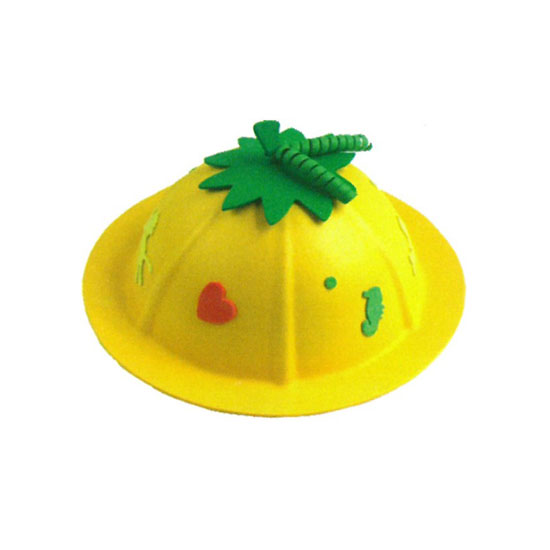 This is a toy hat with a lovely and cute design. It features a bright yellow body with colorful accents. The quality EVA material promises high robustness.