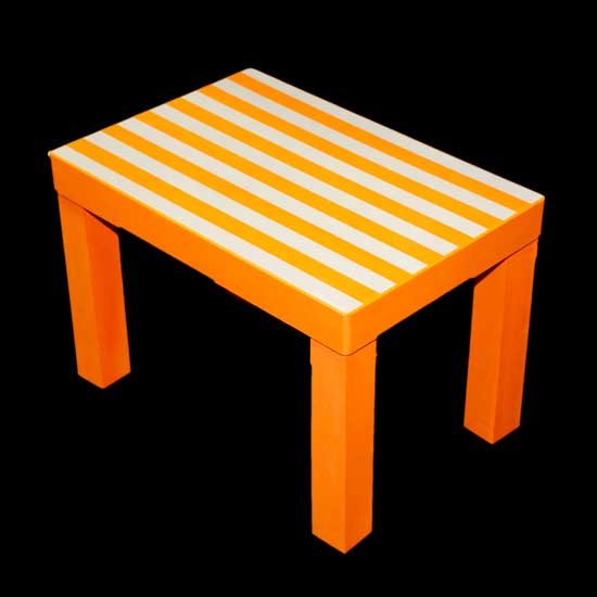 The showcased teapoy flaunts a rectangular top with fashionable orange and white stripes. Made of EVA, it promises sturdy construction and exceptional durability. This beautiful and practical table is an ideal addition to households with kids.