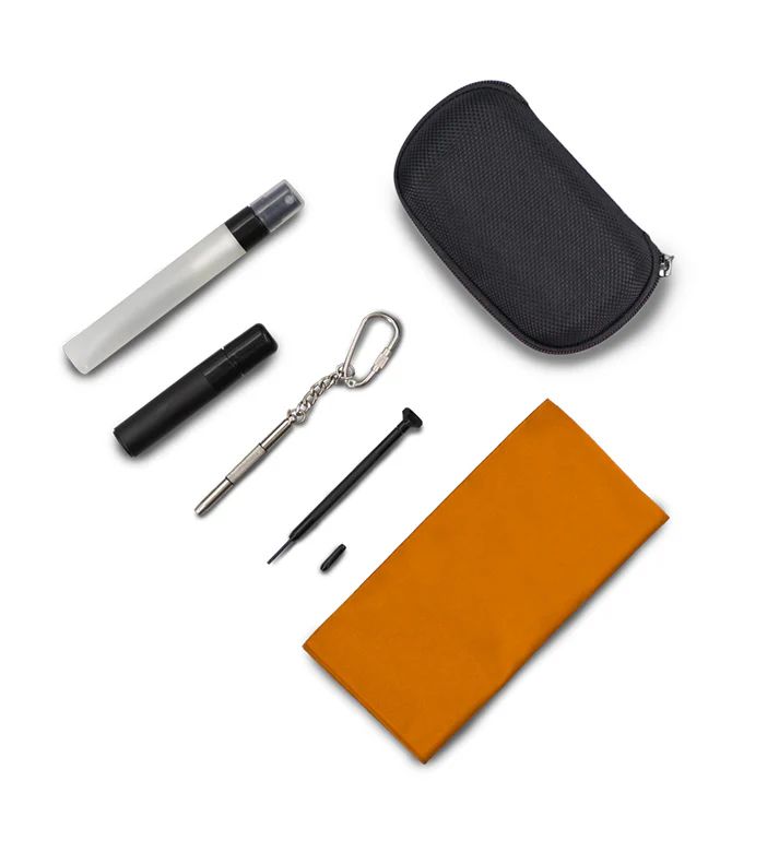 Case, Cleaning Spray, Eyeglass Screwdriver, Cleaning Cloth.