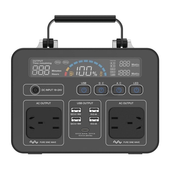 1. EZ500 portable power station has 500Wh lithium battery pack and 500W pure sine wave inverter, with versatile output ports including AC, DC, USB, TYPE-C and Cigarette Lighter outlet to fulfill the needs of appliances at home or electric and electronic devices in outdoor settings, workable with portable solar panel as the solar energy storage system, the built-in BMS provides high security protections, and comply with CE, RoHS, FCC, UL, PSE and UN38.3 certifications.