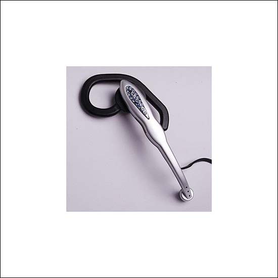 Featuring silver and black colors with diamante accents, this modern earphone will be a popular piece among both adults and the younger generation. The ear hook design allows for secure wearing on your ear. It is designed to fit all standard types of audio players and equipment for easy and convenient use.
