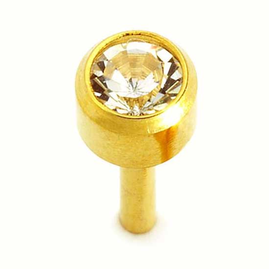 Highlighted is a fashionable ear stud for the piercing of ears. The stud is plated in glittering gold, with a sparkling crystal added as embellishment. The sleek design of this stud makes a great alternative of earring.
