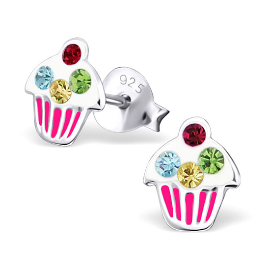 This is a pair of sterling silver ear studs with a fashionable appearance. The ear studs are crafted with sparkling crystals for an elegant touch. This pair of silver ear studs is ideal for young children.