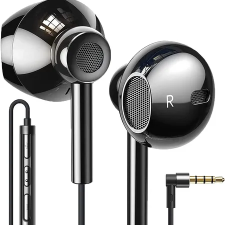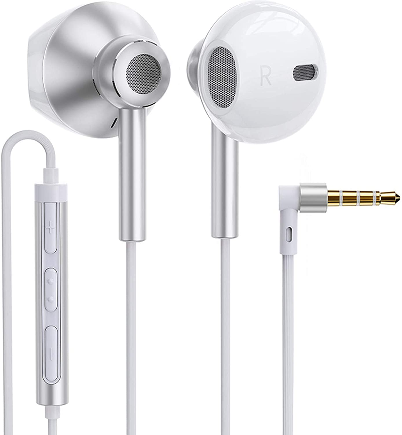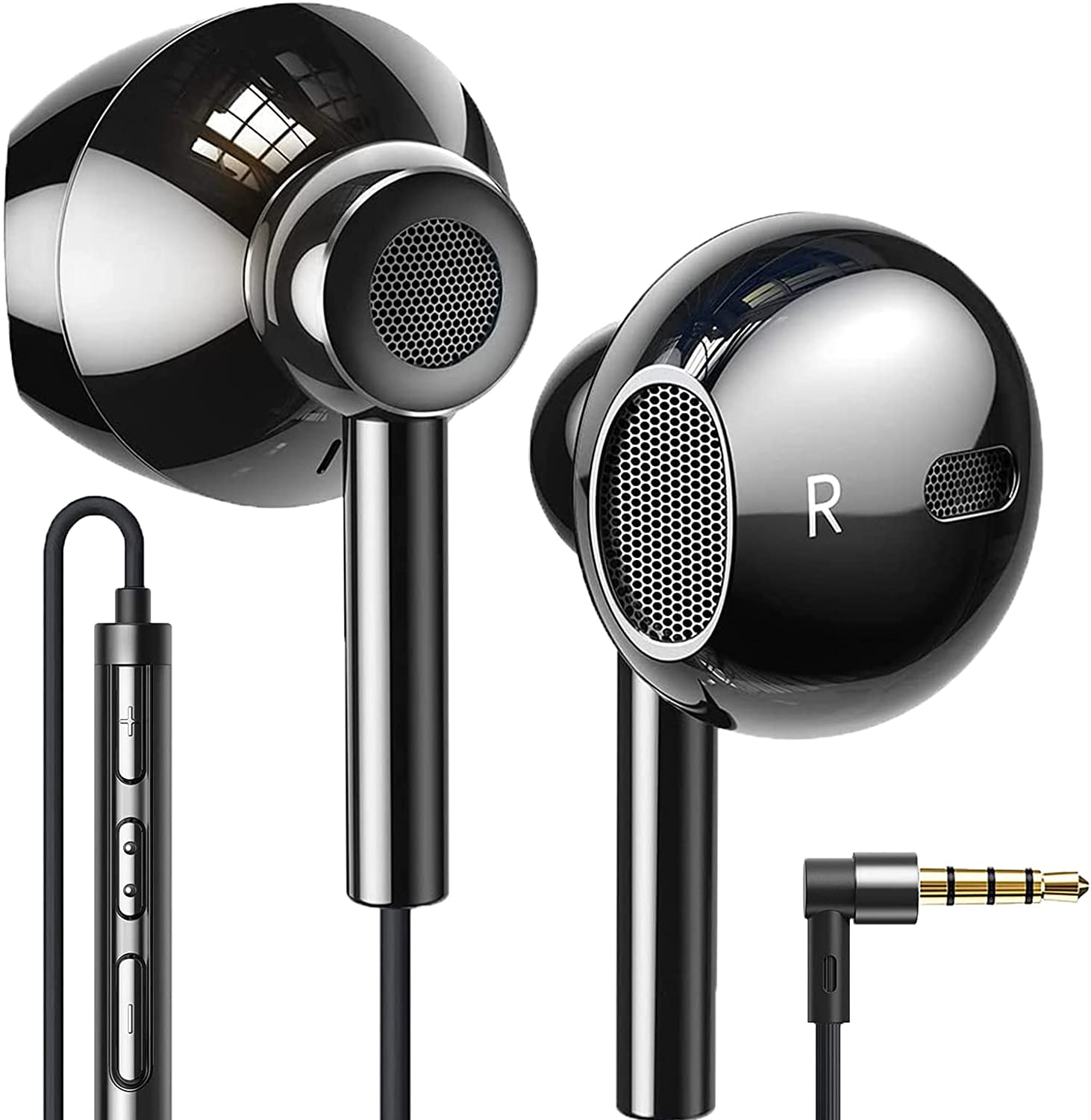 Earbuds in-Ear Headphones Extra Bass Wired Earbuds with Microphone Quad Drivers Hi-Res Earphones Volume Control Noise Isolating Ear Bud Tips Lightweight 3.5mm for iPhone Samsung Laptops