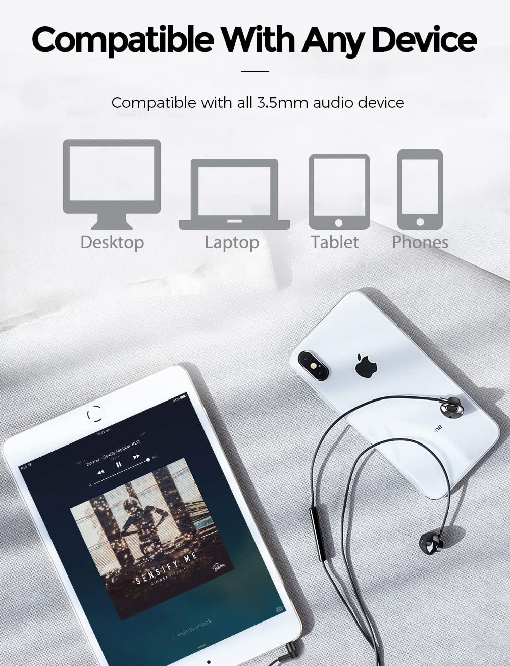 5、Durable Tensile And Not knot - Enhanced by Kevlar;Put the ear buds wired in the storage bag, solves the embarrassment of each tangled.The wired earbuds cord is made of soft and flexible TPE material make it more wear-resistant and corrosion-resistant. Passed 30,000 swing test & 2kg weight test. Compatible with most 3.5 mm enabled devices.
