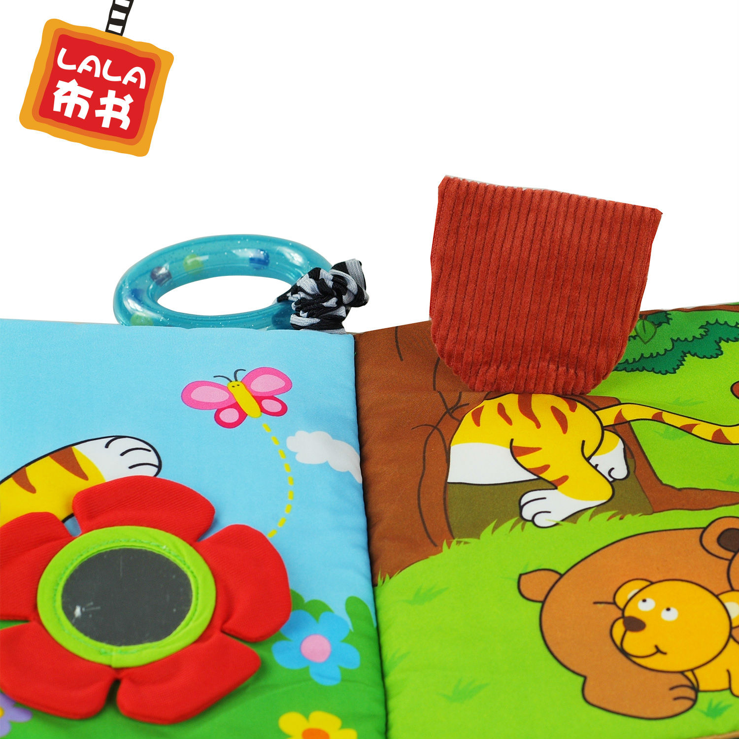 Babies delight over the fun patterns, soft fabric design cloth book with bold colors and sensory-rich features, front and back cover are built-in sound papers, which could effectively attract babies' attention and entertain by self-discovery & opportunities for learning.