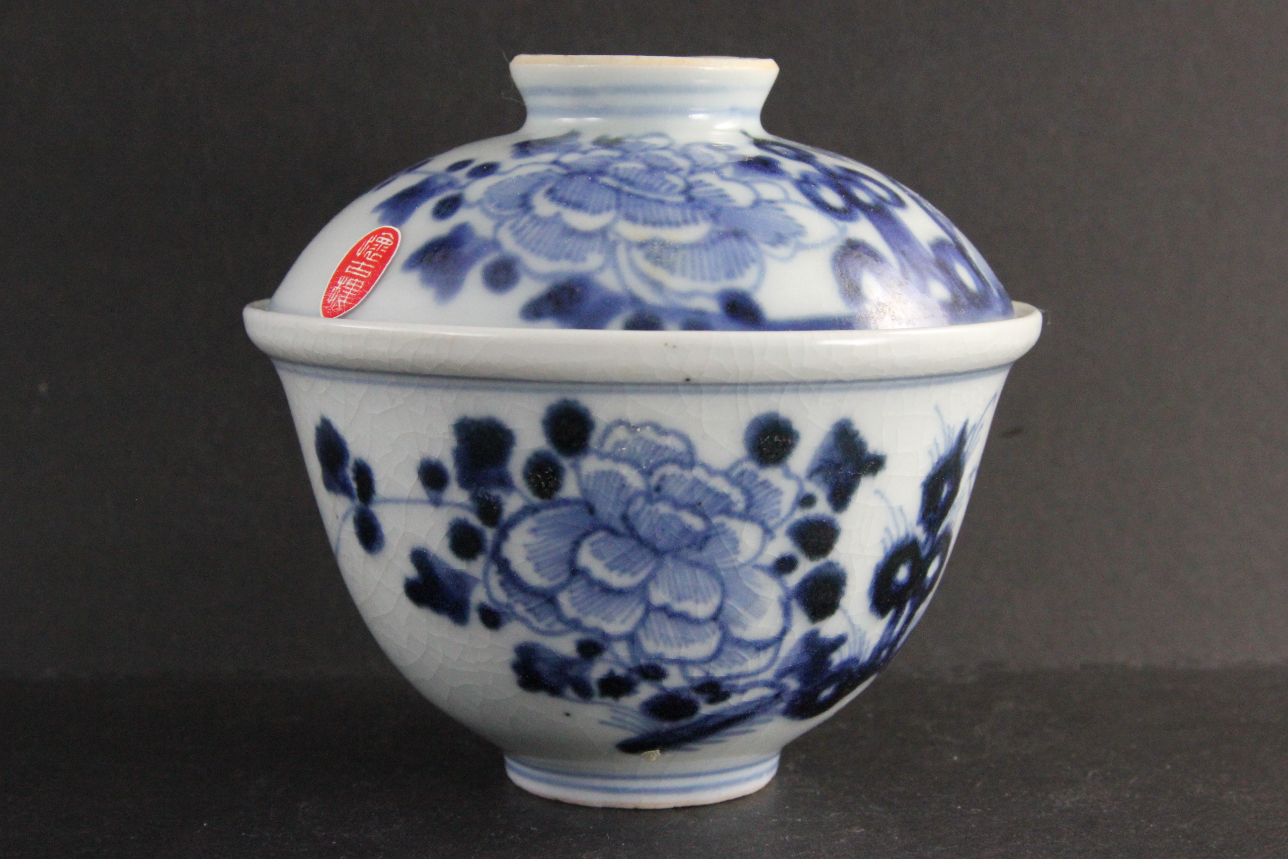 Early Qing Dynasty Blue and White Peony and Magnolia Cave Stone-Painted Covered Bowl
