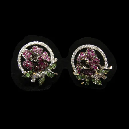 • Material: pink sapphire, diamond, emerald and 18K white gold