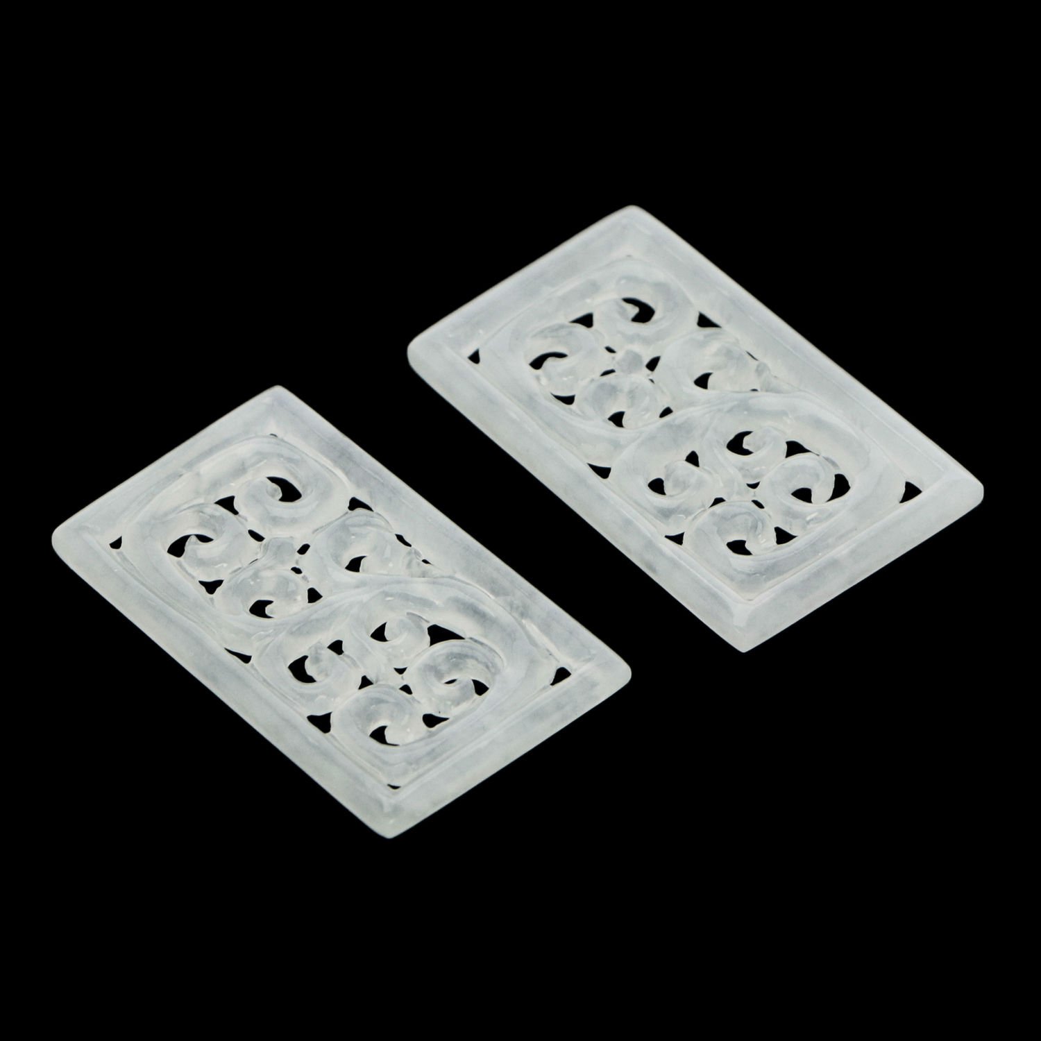 Show your appreciation to your loves ones by using this jadeite earring as a gift. It is handcrafted using natural type A white jadeite jade and comes in a rectangular shape. This jadeite earring is adorned with traditional swirls patterns and can pair well with all kinds of outfits.