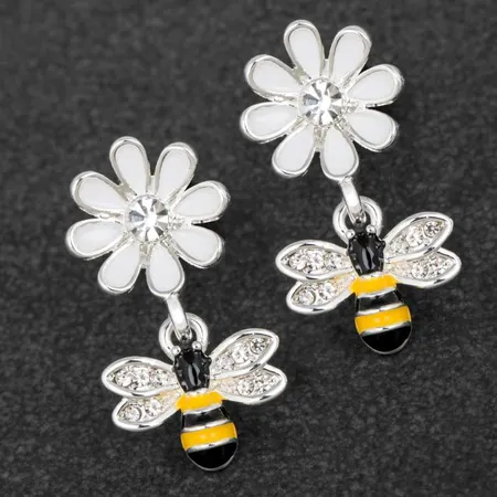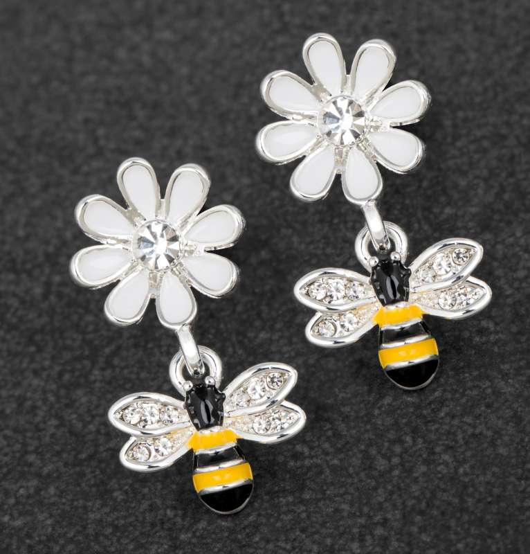• EQ Hand Painted Bee / Flower Silver Plated Earrings