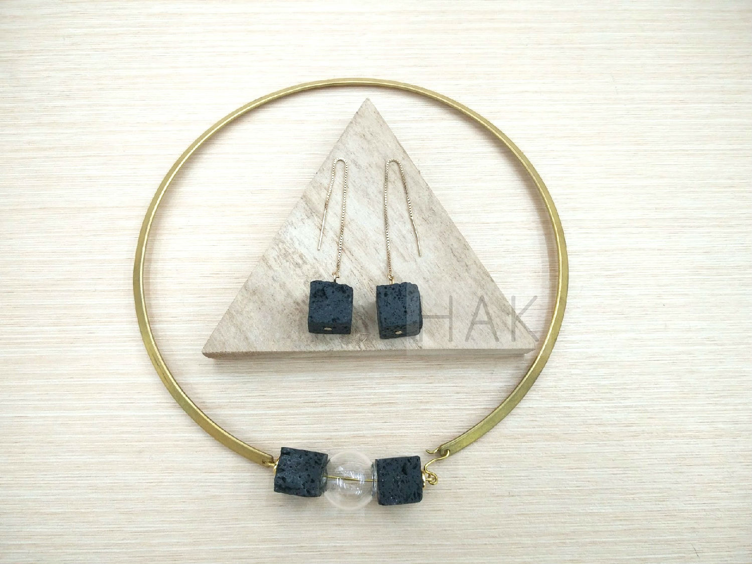 Hypnotic, playful and full of possibilities, this chocker and earrings set nourish every personal jewelry collection. The excellently crafted necklace pairs with two stone cubes and a transparent globe, captivating looks at both casual and formal occasions. The dangle earrings carries textural fish hook closure while flaunting similar cube delicacies to aim for gorgeous and carefree feel.