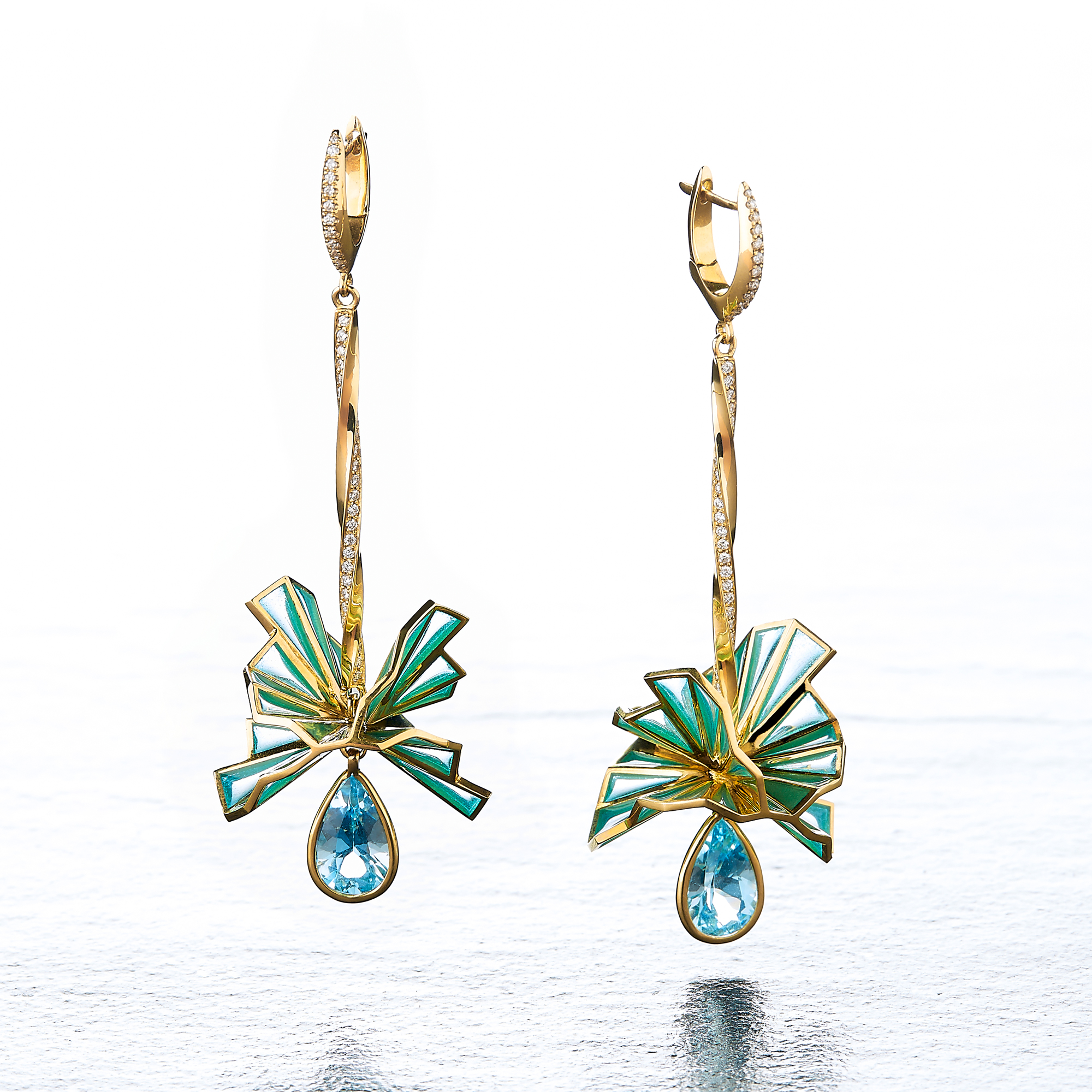 Inspired by the elegance of Russian ballet dancers the designer skillfully merged high jewelry and dance arts. Exquisite earrings created by him replicate the neat silhoutes of ballerinas in ballet skirts.