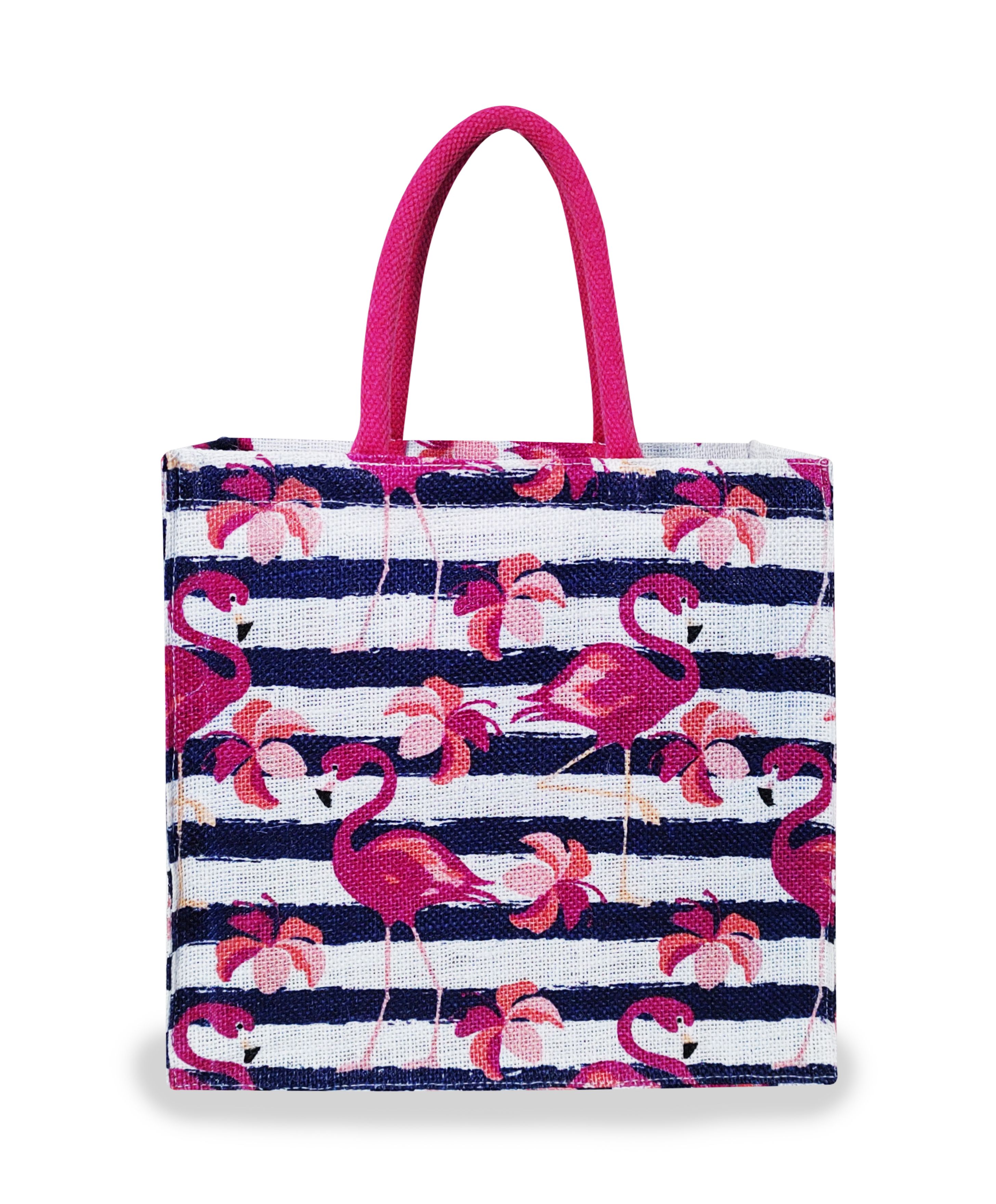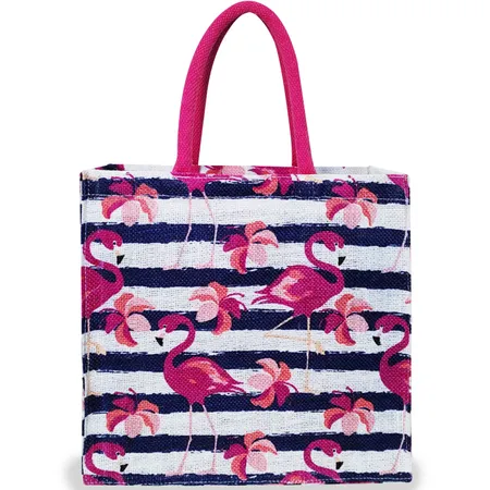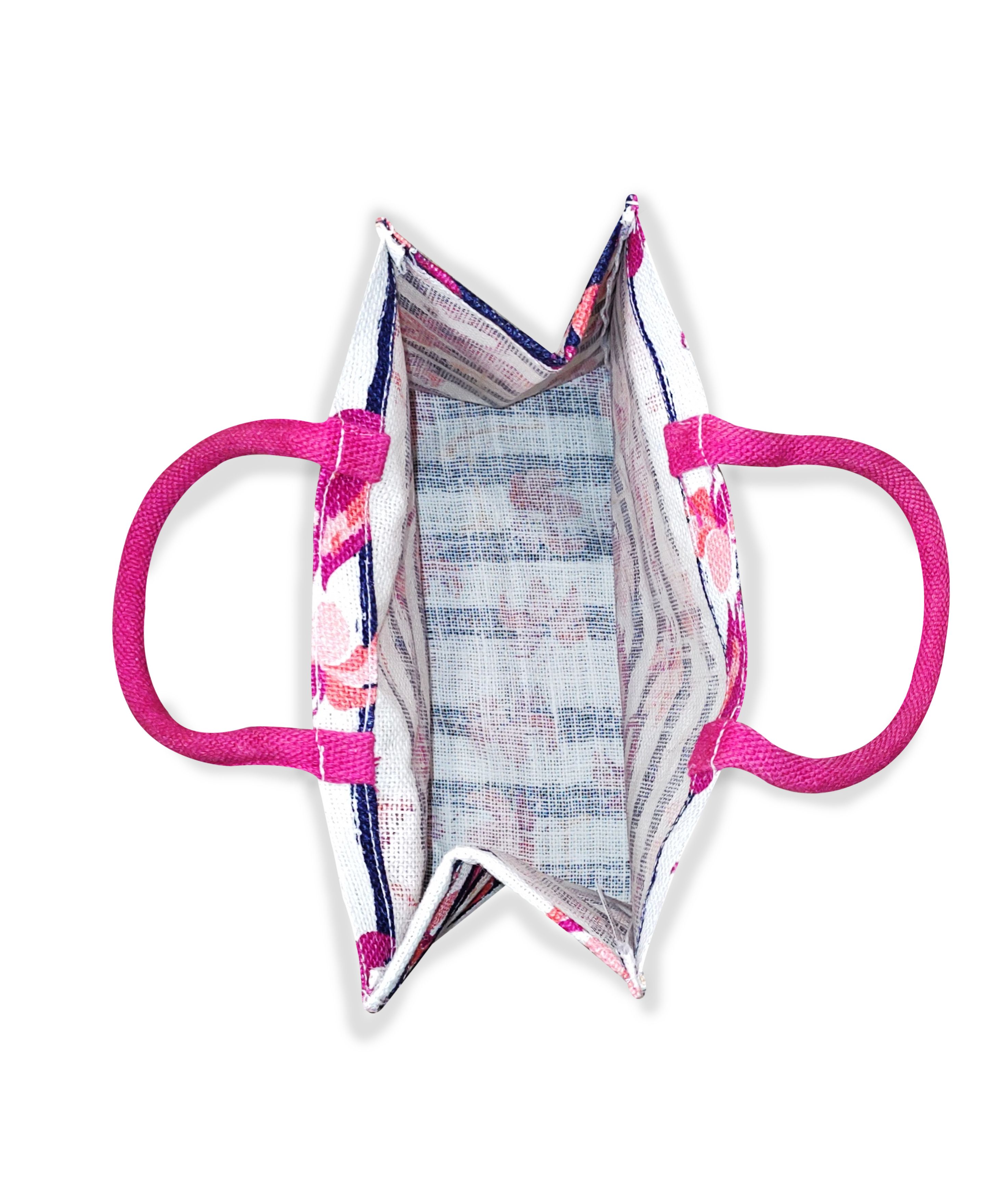 LAMINATED JUTE BAG WITH PADDED WEBBING HNADLES & ALL OVER PRINT
