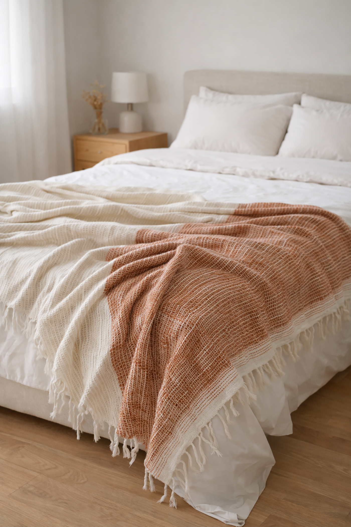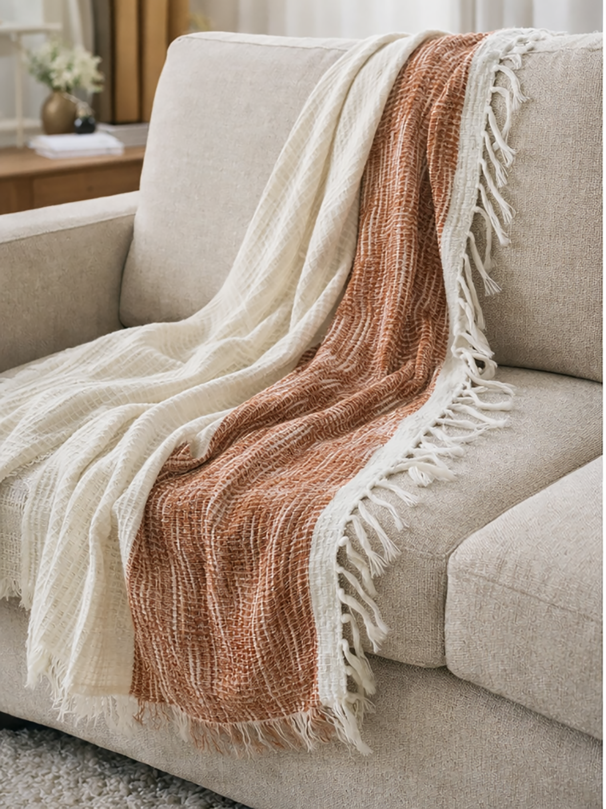 Made from 100% cotton, this throw blanket offers natural breathability, softness, and skin-friendly comfort. Suitable for year-round use, it provides lightweight warmth and retains its gentle feel after repeated washing.