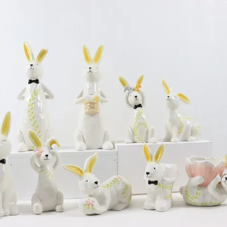 A set of interesting Easter bunny ceramic ornaments, is a suitable for creating Easter festive atmosphere of ceramic ornaments