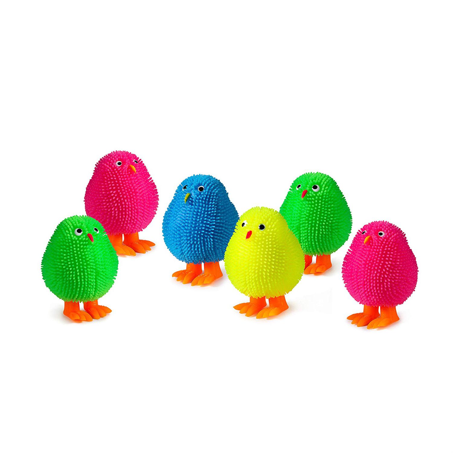 SOFT, WOOLY TOY WITH FLASHING LIGHT – These cute sensory toy chicks are made from ultra-durable, non-toxic vinyl. They’re super-soft with a wooly textured surface. When you toss them against any surface, the mini light inside each chicken starts flashing!