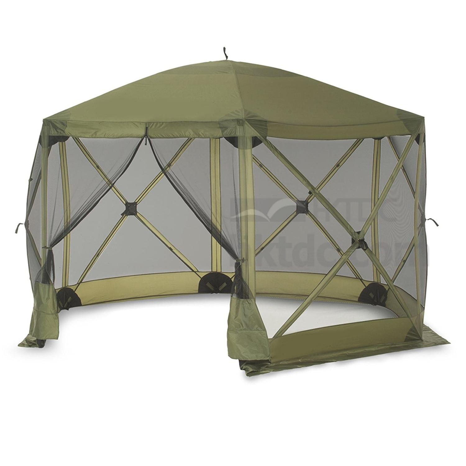 Sets up in seconds, 94 total square feet, 90-inch center height, hub-to-hub 140" X 140"