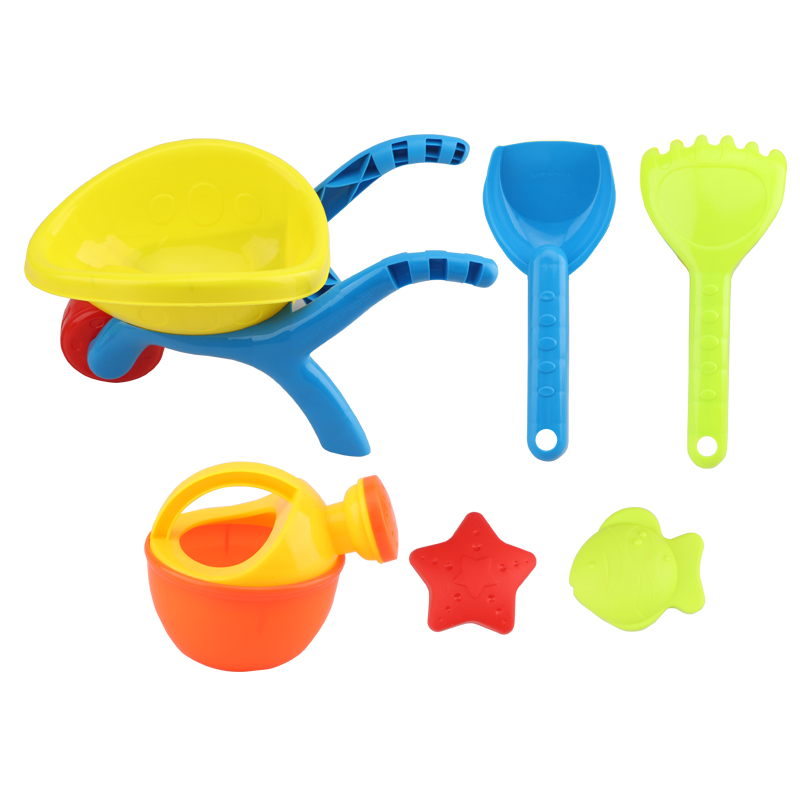 • Comes with watering can, rake, shovel, truck and two containers in the shape of a fish and starfish.
