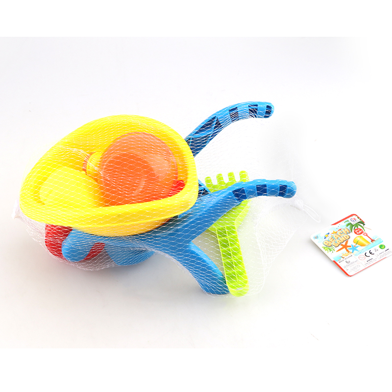 • Eco-friendly beach toy set packed in a fishnet bag.