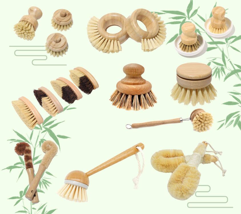 Eco friendly Kitchen Cleaning Brush with Bamboo Wooden Wood Sisal Bristles Brushes for Vegetable Fruit Dish Pot Plate Scrubber