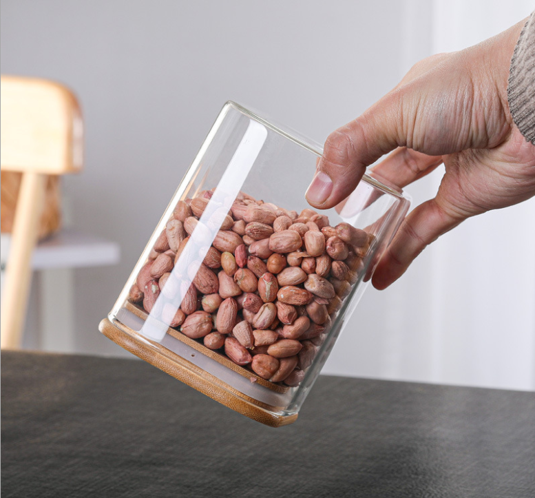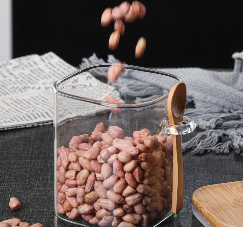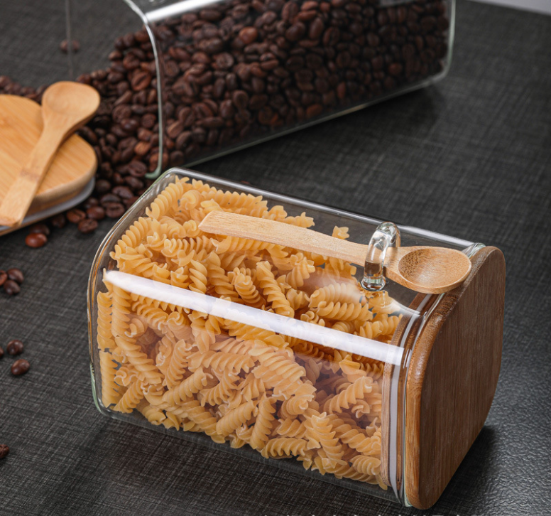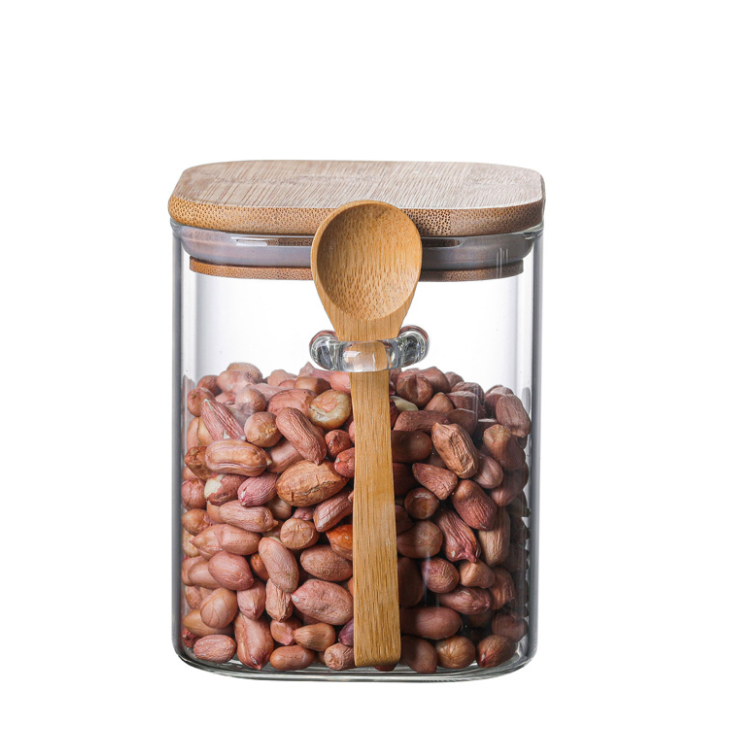 Eco-friendly food jar glass coffee canisters with bamboo lid and spoon