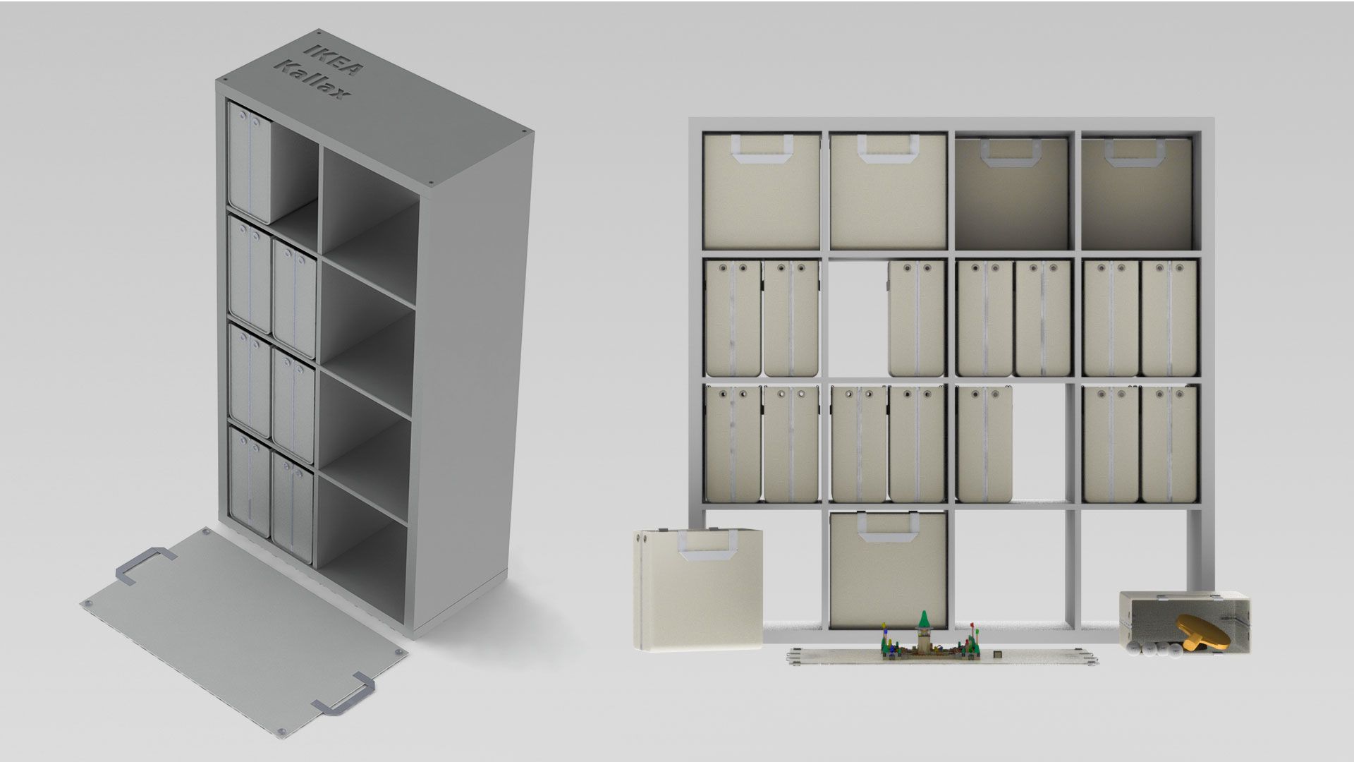 Eco1 is a bag and a mat, it perfectly fits into the IKEA Kallax storage system. Simple transform between storage bin into carrying bag or playmat or tool mat; and verse versa, instantly.