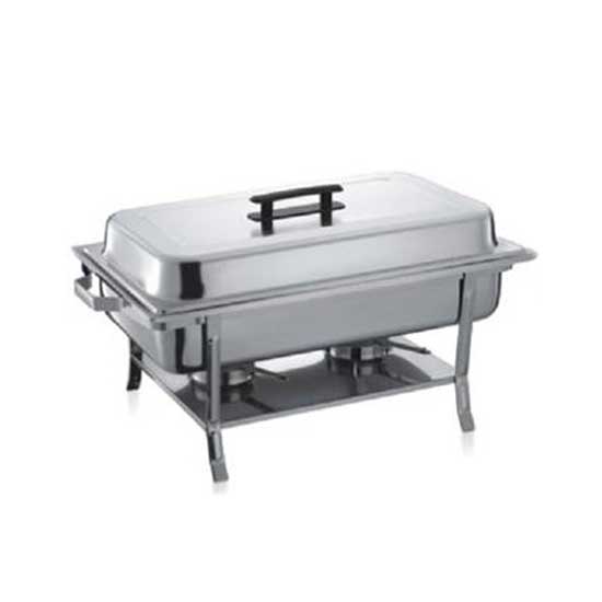 This economic chafing dish includes a rectangular-shaped food pan, a water pan, a fuel holder and a domed cover. With quality metal construction, the chafing dish showcases a mirror finish. The stylish and functional chafing dish is perfect for buffets, parties, clubs, etc.