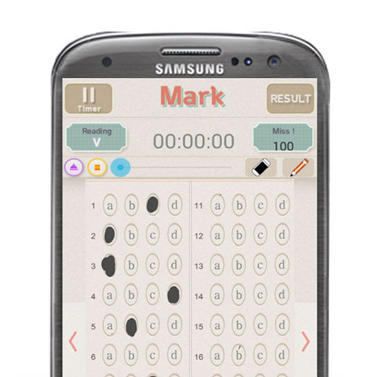 TOEIC Checker for the S-Pen application is used exclusively for the Samsung Note 3. A real marking mode is added to the application so that you can mark the answer sheet on the app like marking on the OMR paper with the use of S-Pen. This app is designed by our experienced engineers.