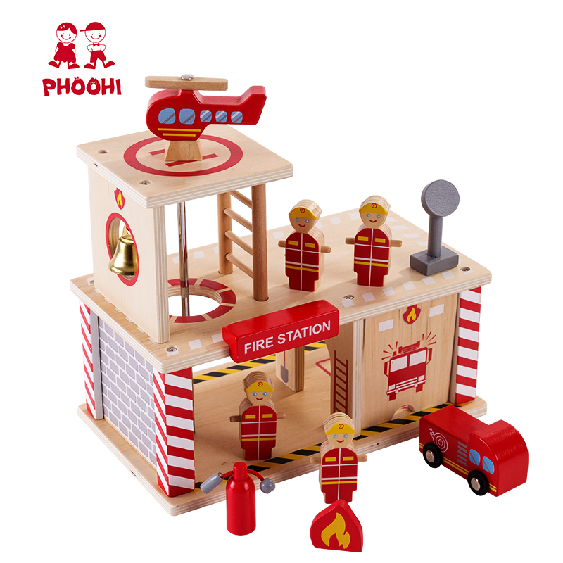 Educational Children Role Play Game Wooden Fire Station Toys for Kids