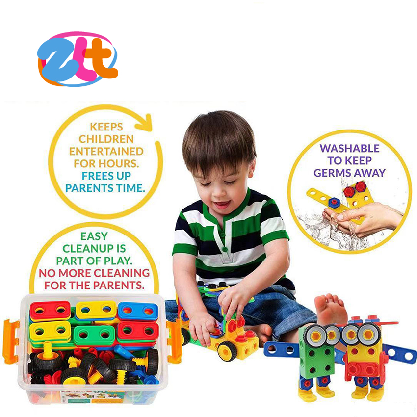1. Eco-friendly material of Educational DIY kids drill screw building block toys.