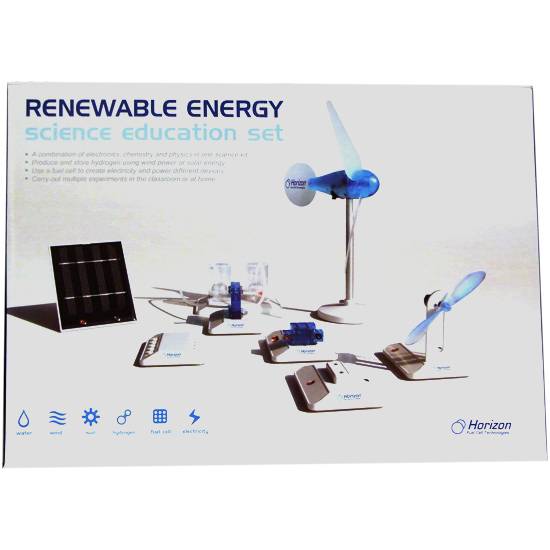 The renewable energy science education set is a modular experiment set designed to demonstrate the workings of a complete clean energy technology system on a miniature scale. With this kit, an entire miniature renewable energy system can be constructed on a lab-scale. This set includes a wind turbine kit, a solar photovoltaic panel, an electrolyzer, a PEM fuel cell, and hydrogen storage system.