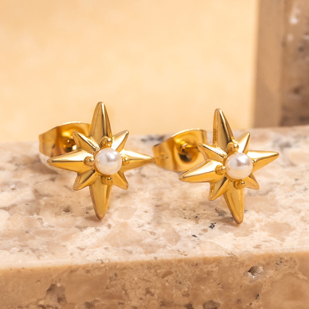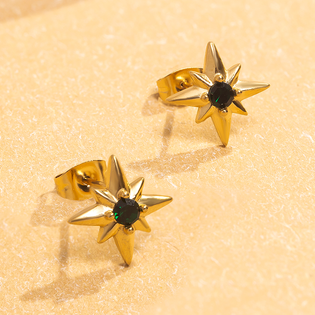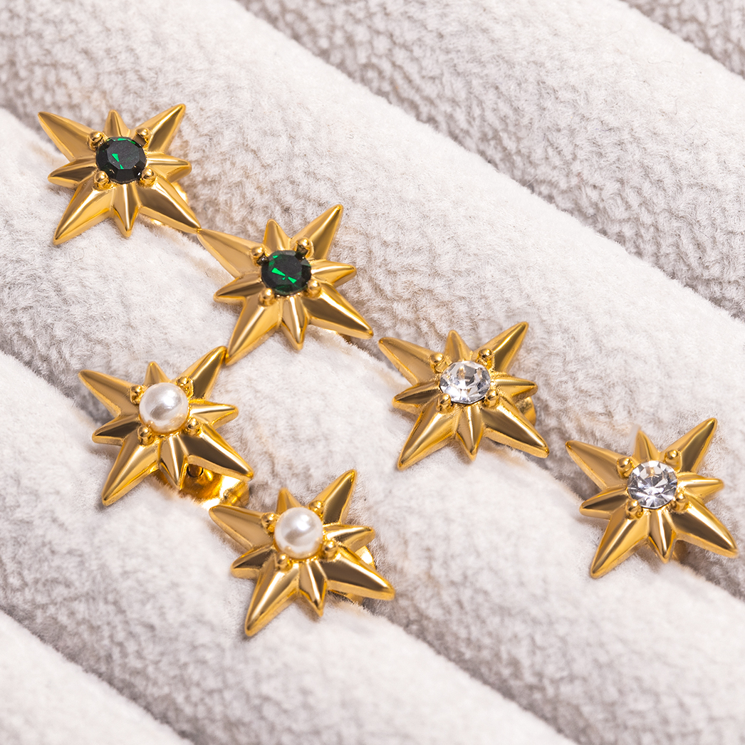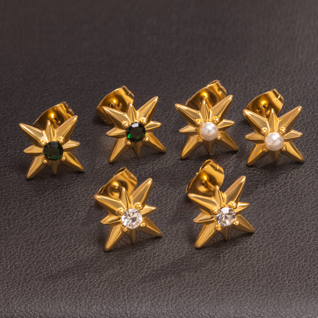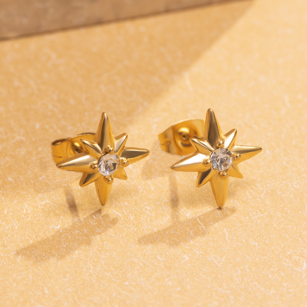 Custom Stainless Steel Waterproof Jewelry Trending Earrings 2024 Eight Pointed Star Gold Plated Stud Earrings