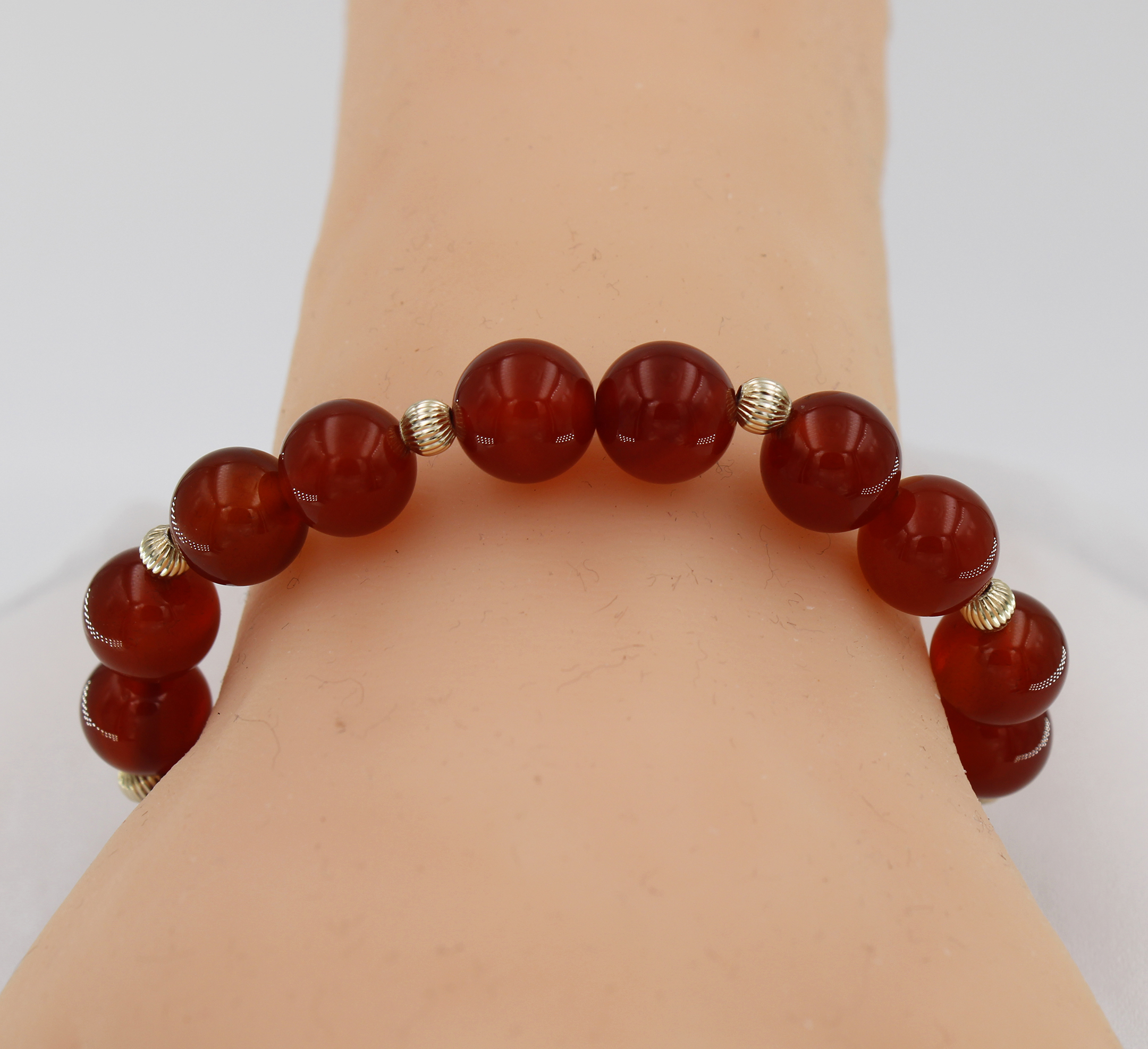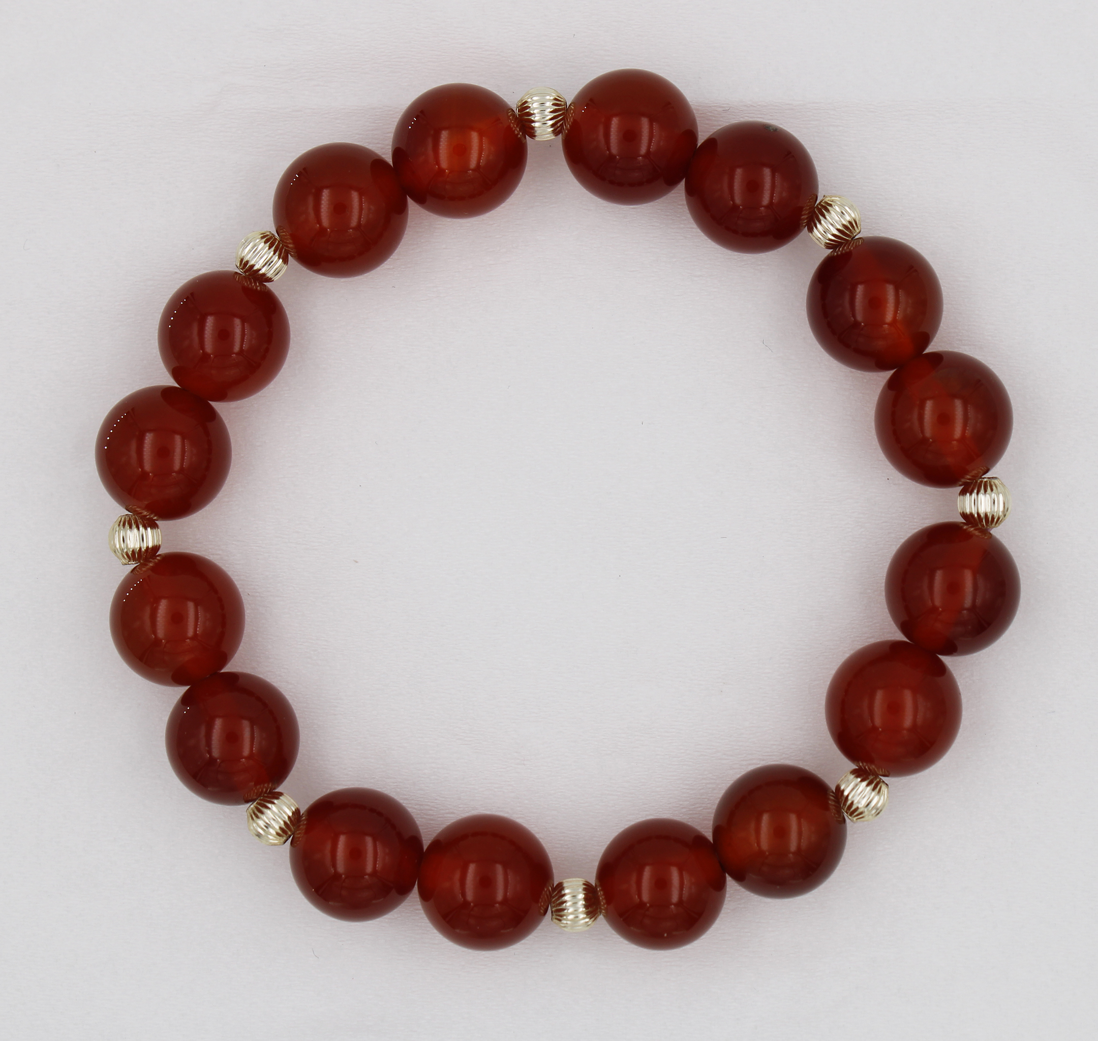 Consisting of 10mm red agate bead (16pc.) & 4mm silver corrugated bead (8pc.) in gold plated.