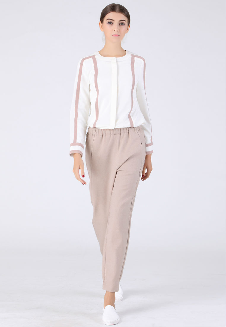 Aubrey Elastic-cuff Pants is made with excellent quality fabric with elasticity which fits slightly loose while keeping the slim silhouette.