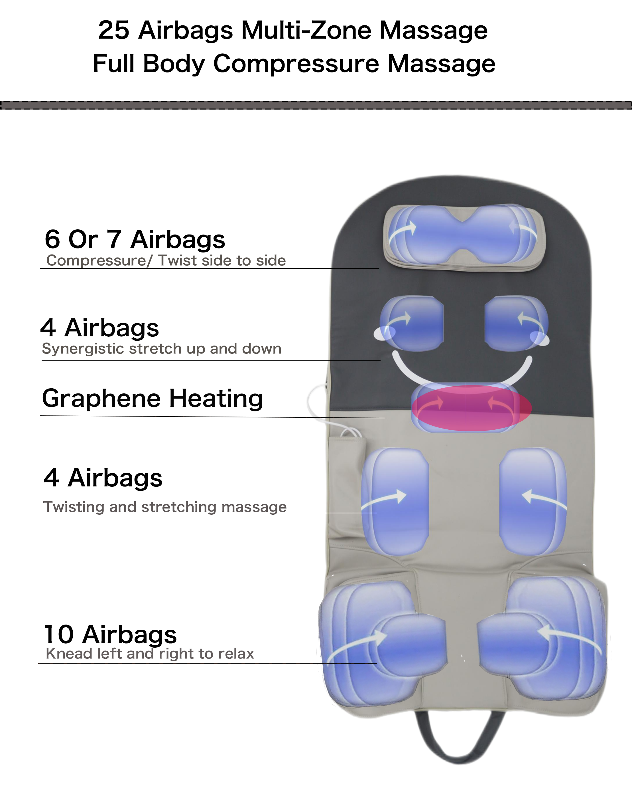 2.Massage areas: neck, shoulders, lumbar, buttocks,