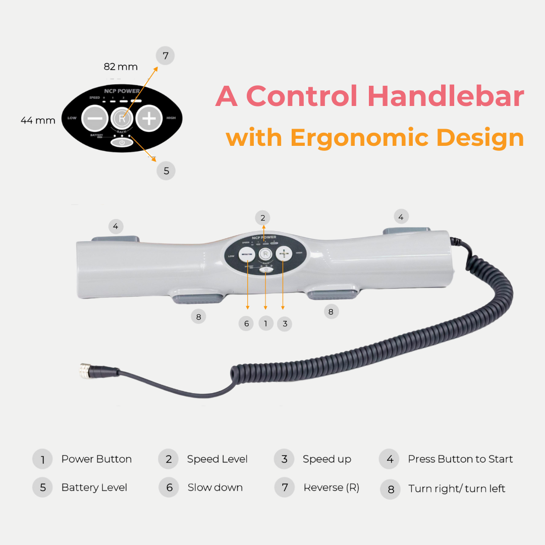 5. Ergonomic Control Handle Bar: This device is designed to guarantee day-long operation for daycare centers.
