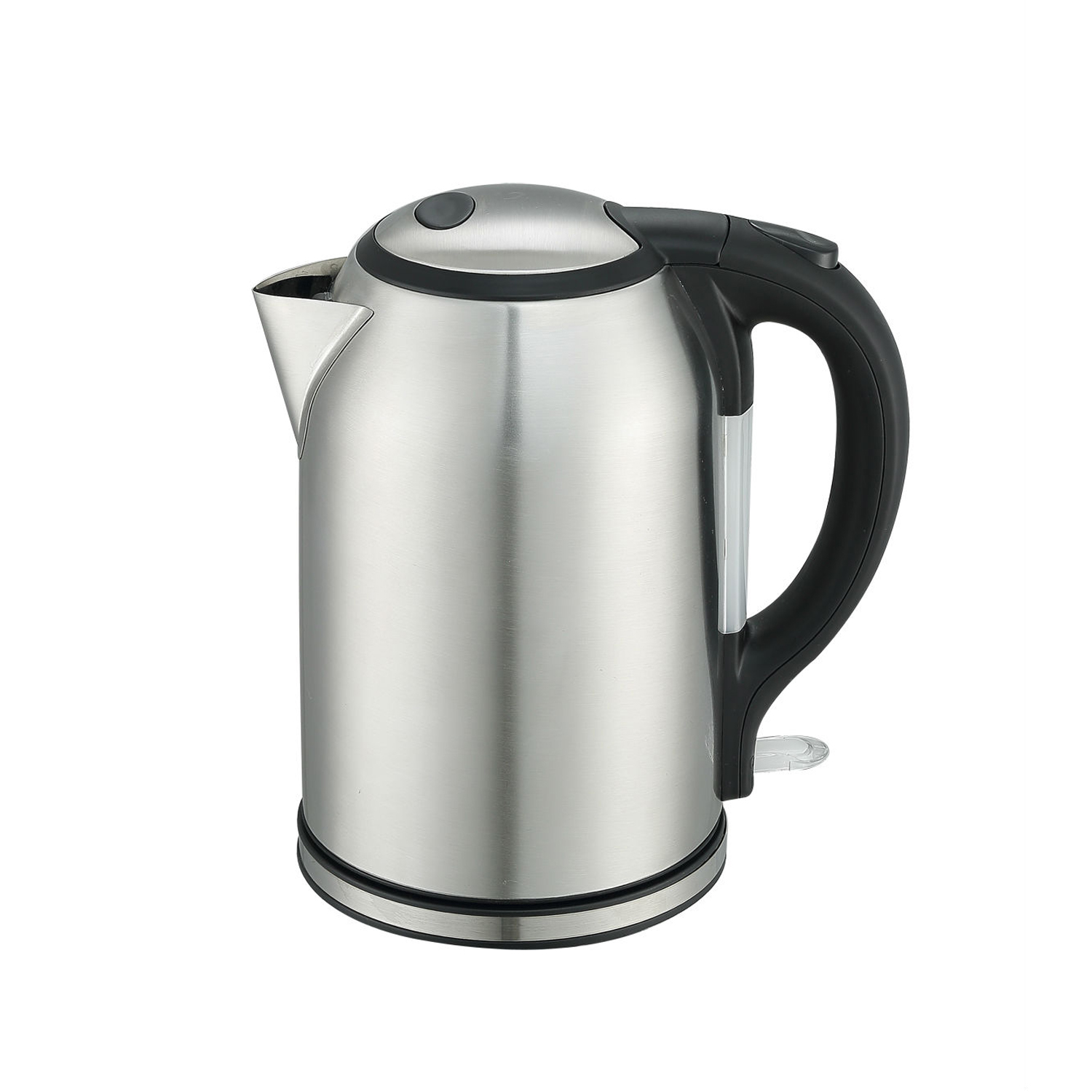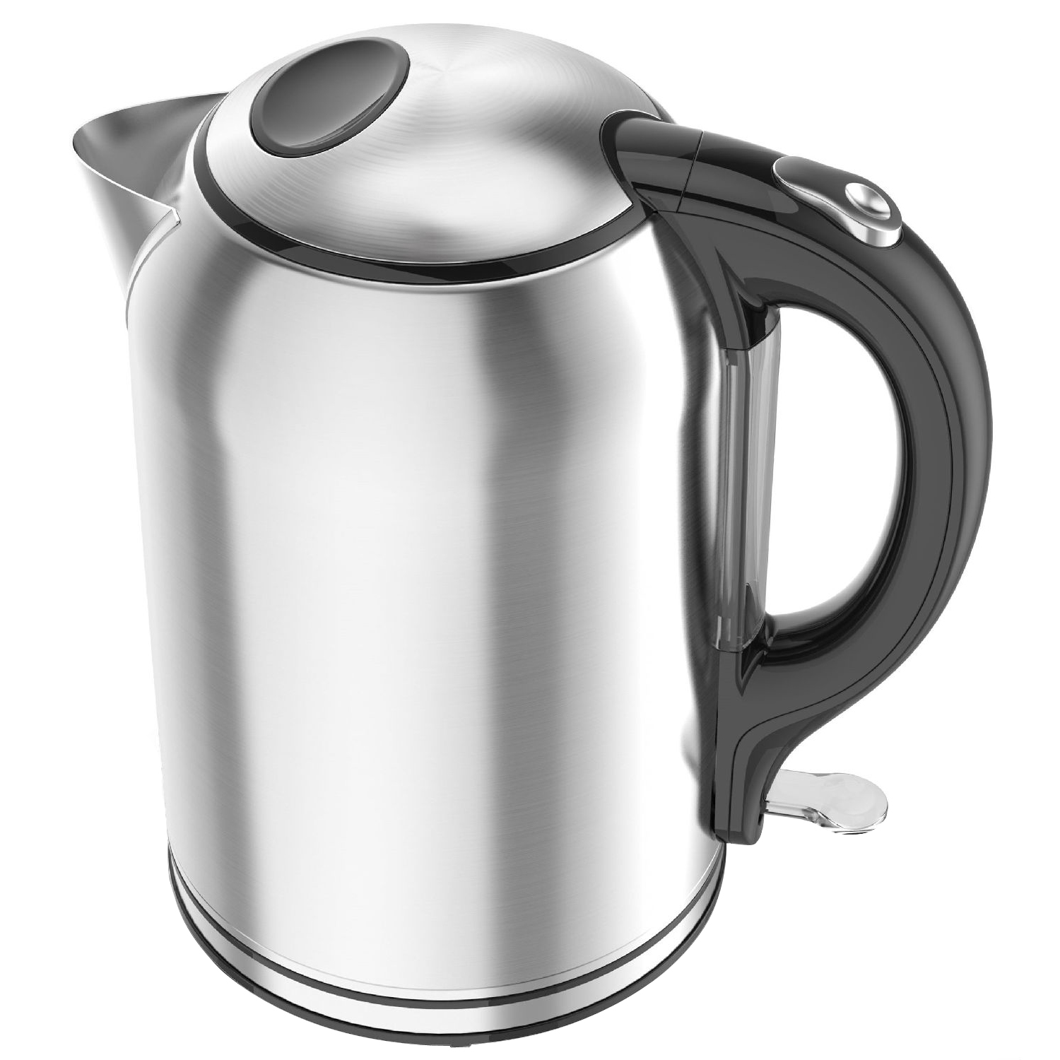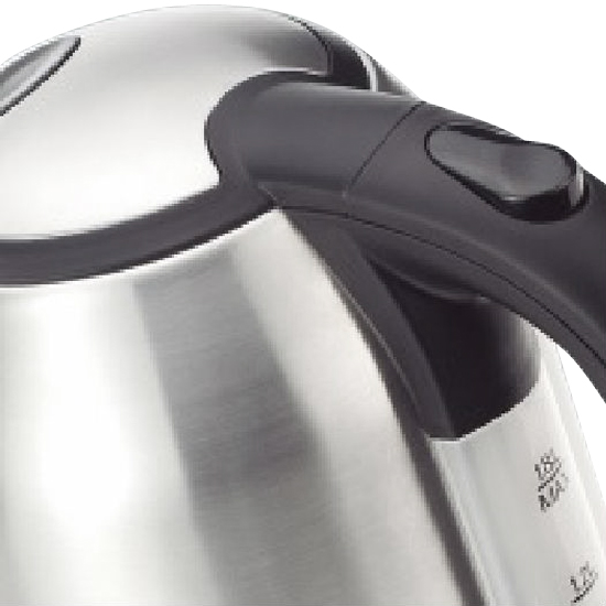 This sleek, polished electric kettle comes with a cylindrical silhouette with domed top. Water window on one side is made to offer a clear view of water level. With a convenient automatic shut-off system, this kettle manages to stop boiling when the water reached boiling point without constant monitoring.