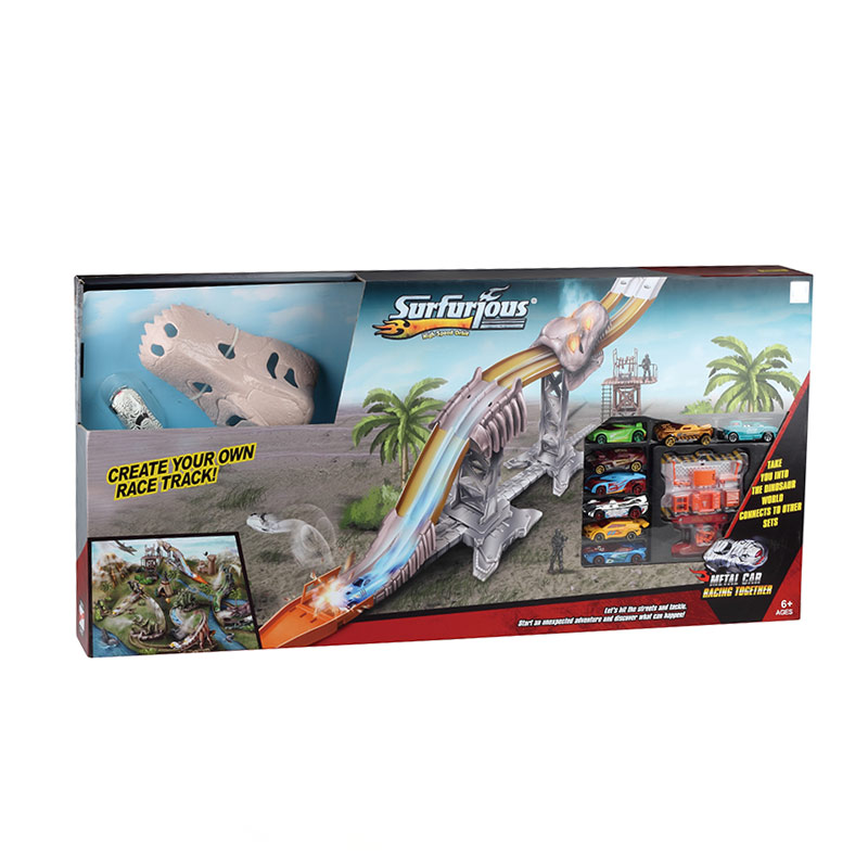 Electric Plastic Climbing Dinosaur Track Car Toys with Dinosaur Model And 9 Pcs Alloy Cars